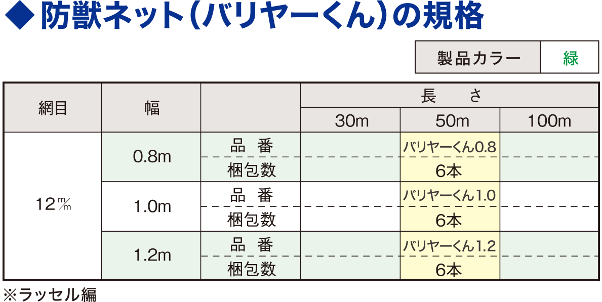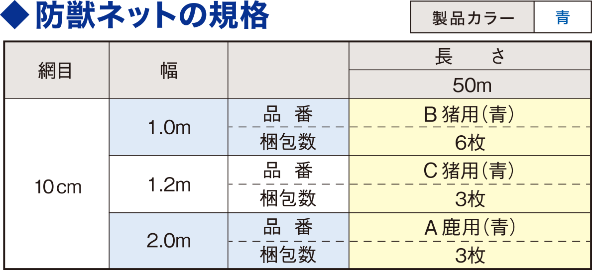 最もスタンダードな獣害対策ネットで、全国を通し被害額の大きいシカやイノシシなど大型の野生動物に対応しています。