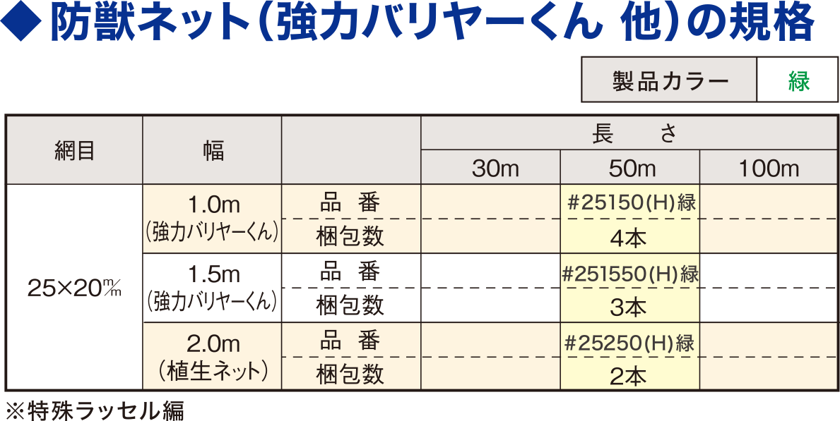 網目を少し大きくし網糸を丈夫にすることでシカなどの大型の動物にも対応しています。