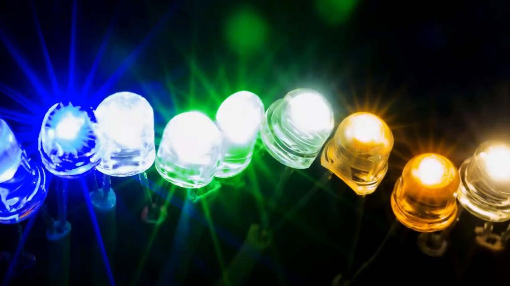 LEDは素材の組成を変えることで様々な色の光を出すことができます。これはLEDには色を構成する光の三原色(赤・緑・青)が揃っているためです。