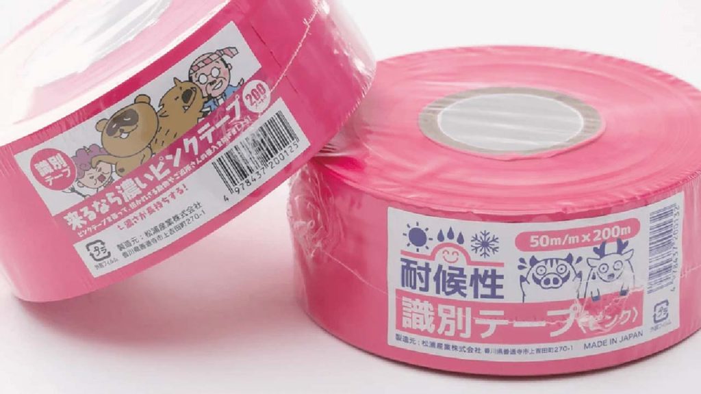 防獣目的のテープは様々な製品がありますが、もっともポピュラーな製品が松浦産業株式会社の「来るなら濃い ピンクテープ」です。