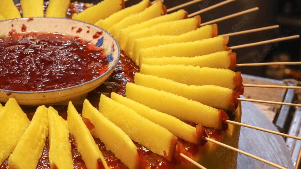 桂花で作る甘い伝統菓子。粉を固めたようなものから、ゼリー、米粉や小麦粉を使用したものまで、地方によって様々です。秋の節句や祝いの席に供されます。