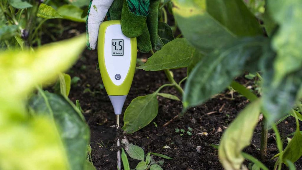 土壌テスターは本当に土に差すだけのため使い方は非常に簡単。もちろん鉢やプランターでも使用することができます。