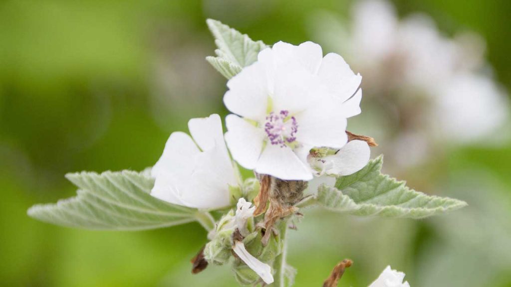 マーシュマロウは「お菓子のマシュマロ」の由来となった植物です。