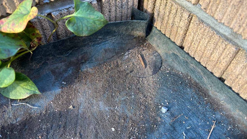 防草シートは下方向に対しては極めて強力ですが、横方向に対して隙があります。その理由は「壁と防草シートの間を埋めることが難しく、空間があいてしまう」からです。そのわずかな隙間からでもドクダミは地上に顔をだします。
