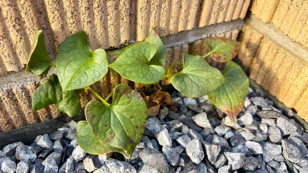 そのため、ドクダミが庭に入り込むほとんどのケースは「地下茎」による侵入です。隣地や空き地から、フェンスの下の隙間やコンクリ基礎と土の間などを通って地中から侵入しています。
