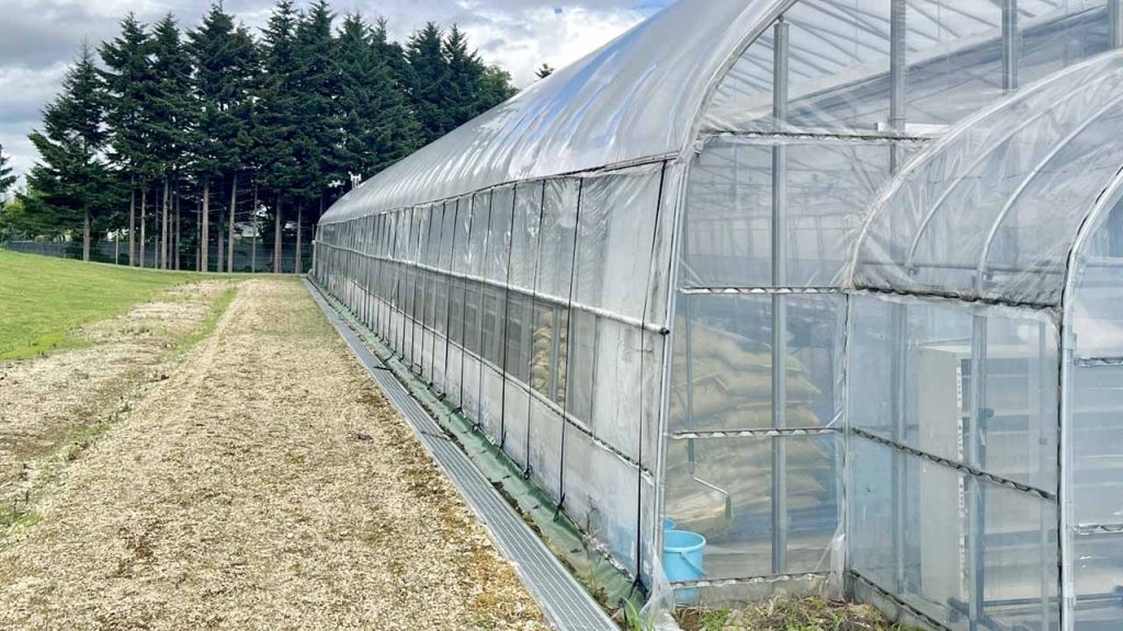 防風ネットの設置は、ハウスから少し離して展張することで効果が高まります。台風対策としてだけでなく、年間を通じ安定した運用を行うためにも役立つ資材だと言えます。