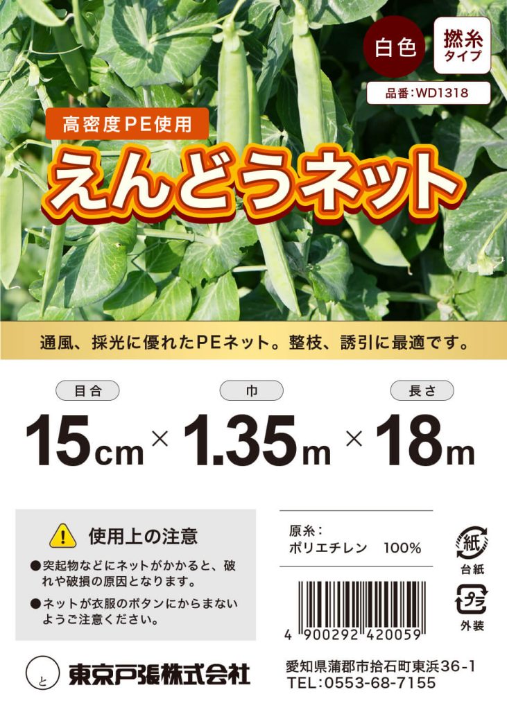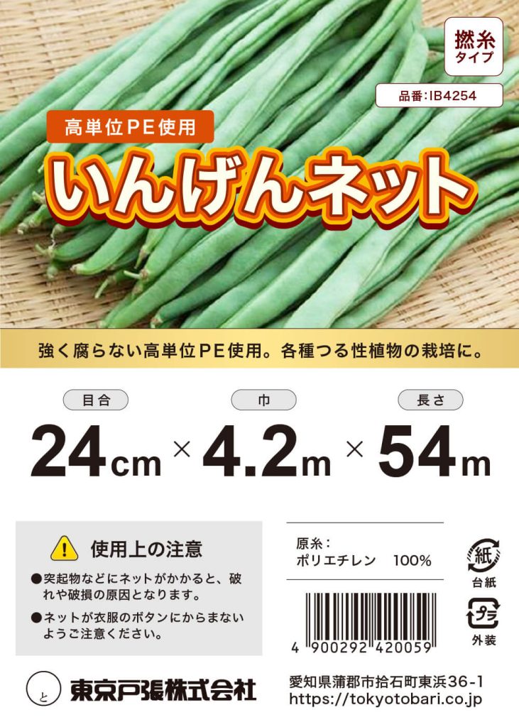 いんげん豆、えんどう豆に合わせ規格が作られた、「いんげんネット」や「えんどうネット」は、これらの栽培においてそれぞれの作物に最適を求めた製品だと言えます。